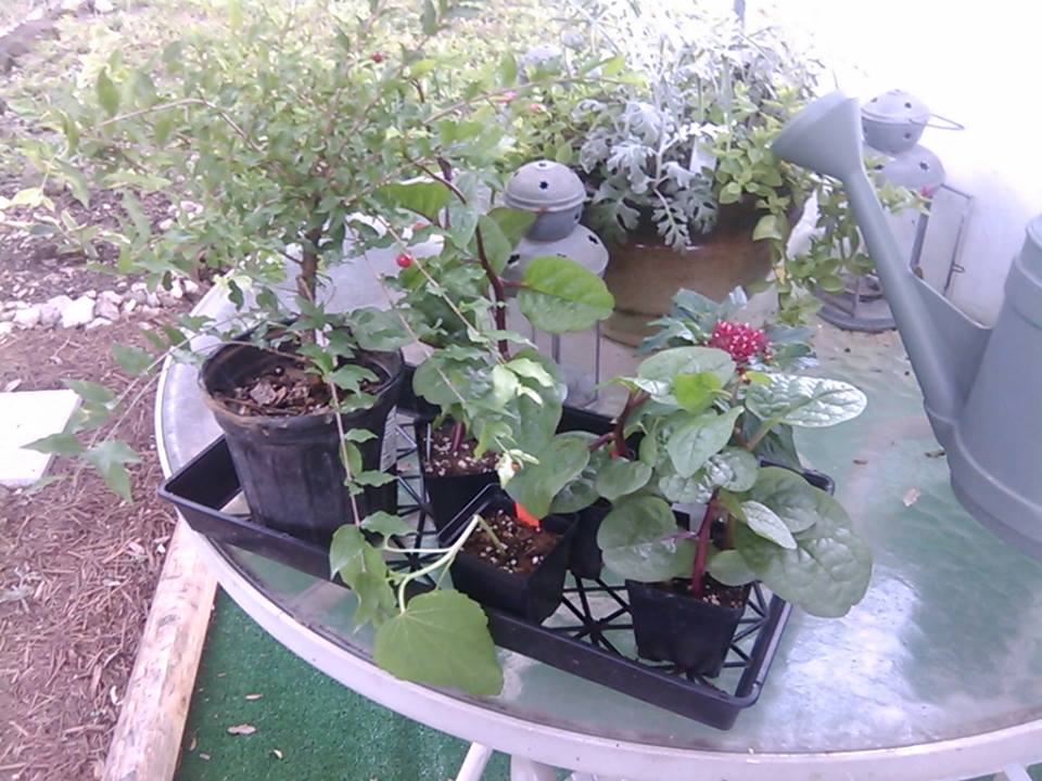 My self imposed exile from Natural Gardener's, well any garden center is over. I am the first to admit, I may have had a problem when I went shopping. It seems, I could not leave any garden center without spending at least $100. No kidding. I decided I finally have a handle on my addiction and it was time try out my new found self control. Although, I did not go alone. Kevin went with me...just in case. The cool this about Natural Gardener's is they have a rewards card. For every $10.00 you spend, you get a stamp. It does takes 20 stamps to fill a card. I got to use my rewards card on my visit, so I only ended up spending $7.90. Woo hoo me! I bought two Malabar Spinach plants, two okra plants, a Dwarf Barbados Cherry Tree, and a flower to replace one that died.
